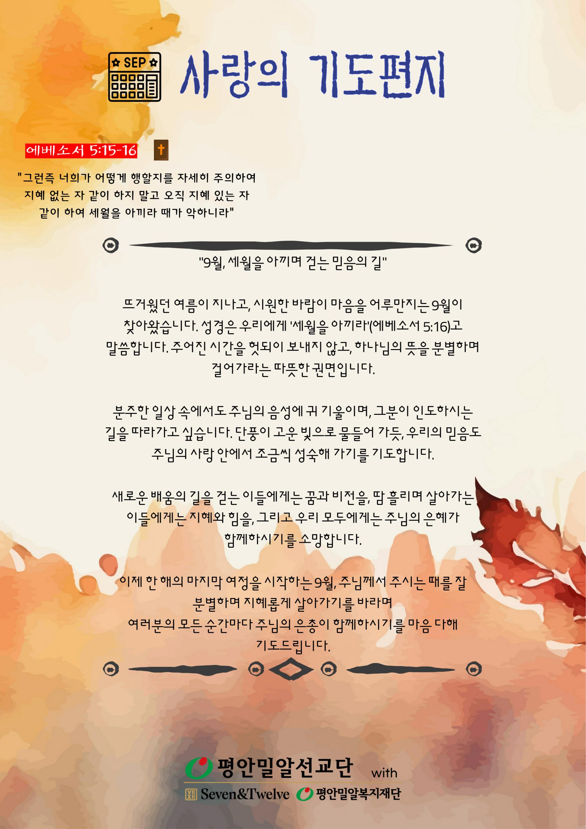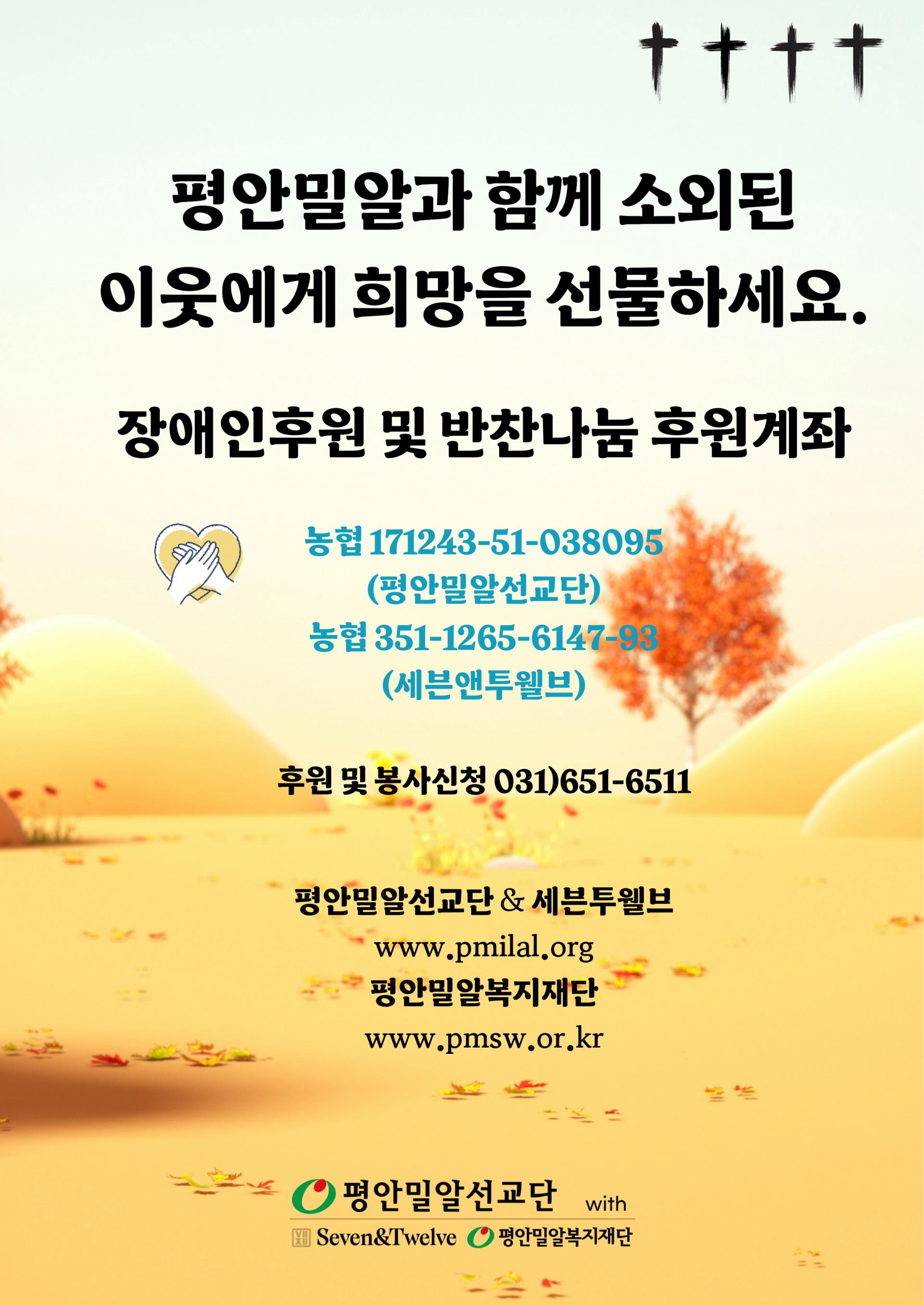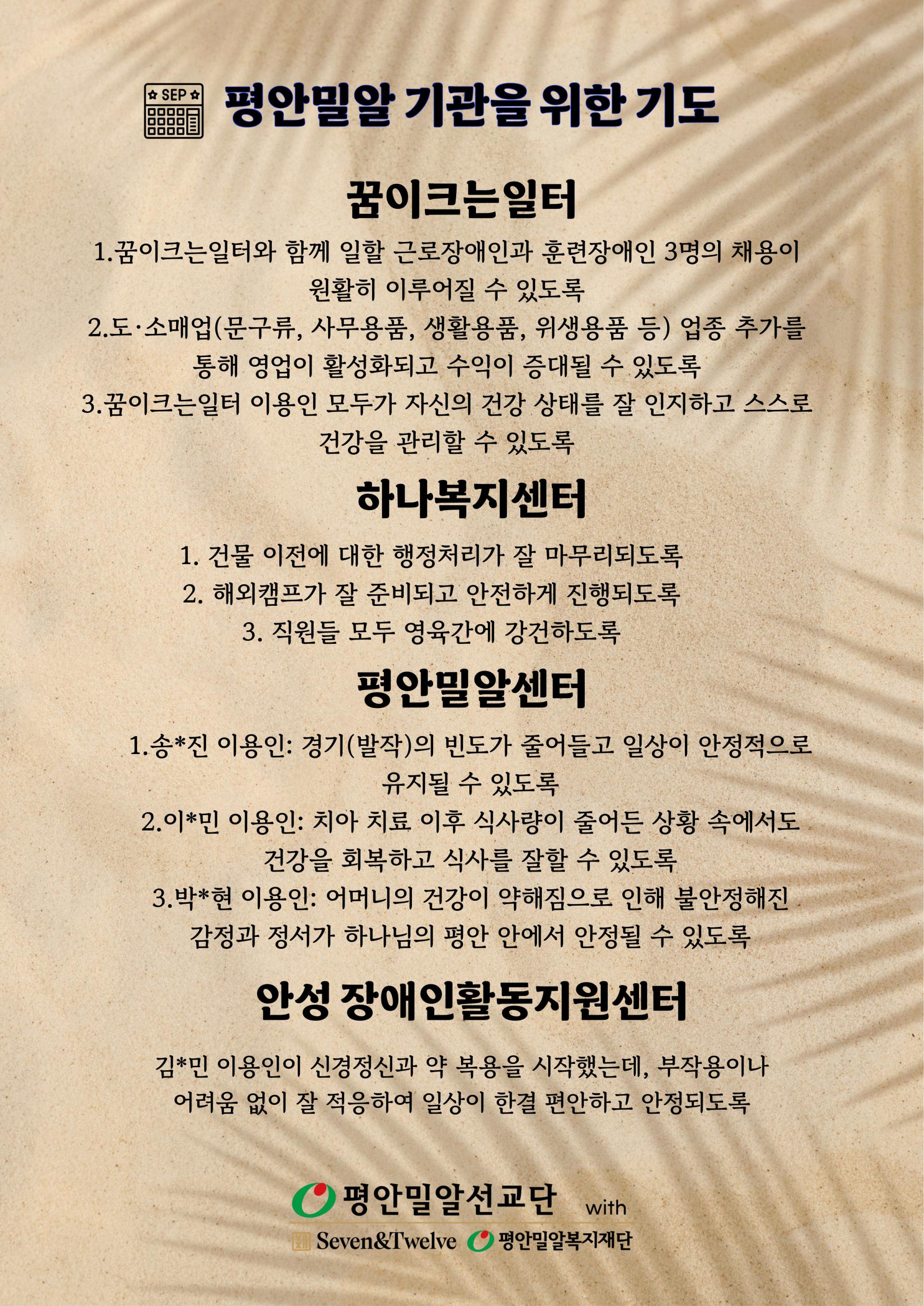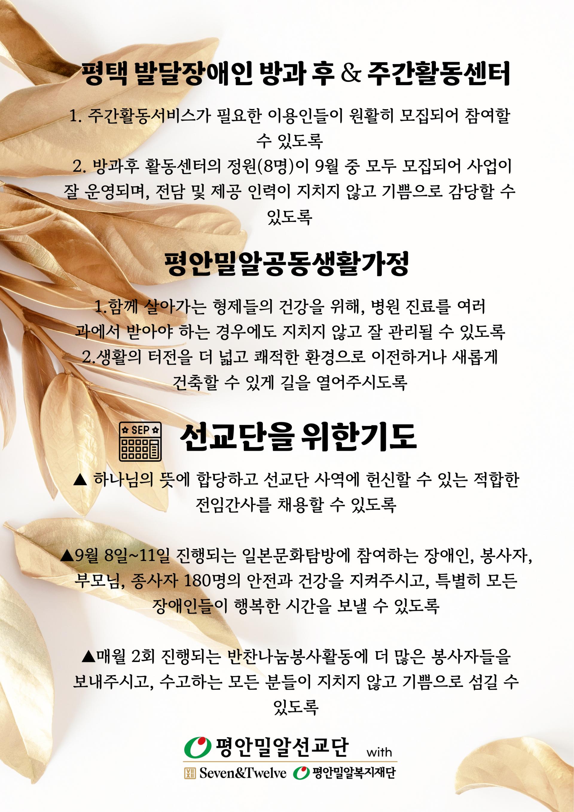 9월에도 사랑하는 평안밀알의 장애식구들과 기관들을 위해 기도해주세요...